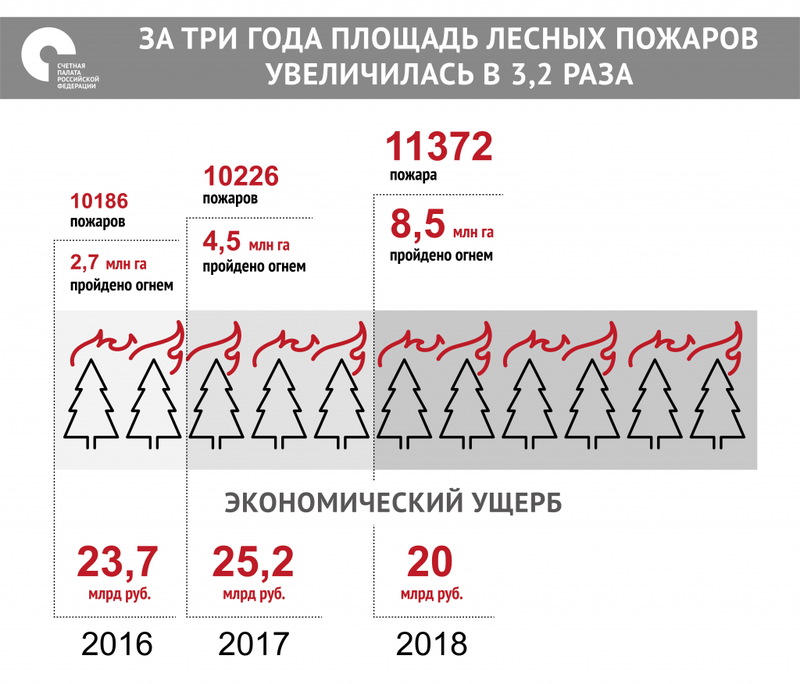 Пожары - основная причина гибели лесов. Для восстановления леса требуется несколько десятков лет и несколько поколений лесничих. За период 1994-2005 гг. в Российской Федерации погибло 5308 тыс. га лесных насаждений (в среднем 442 тыс. га в год). Из этой площади 70% погибло от пожаров, 14,3% - от воздействия неблагоприятных погодных условий, 12,9% - от повреждения вредными насекомыми и лишь 2,8% пришлось на весь комплекс прочих факторов (болезни, повреждения дикими животными, антропогенные факторы). За рассматриваемые 12 лет только в 1995 г. и в 2004 г. роль пожаров в гибели лесов не являлась главенствующим фактором.